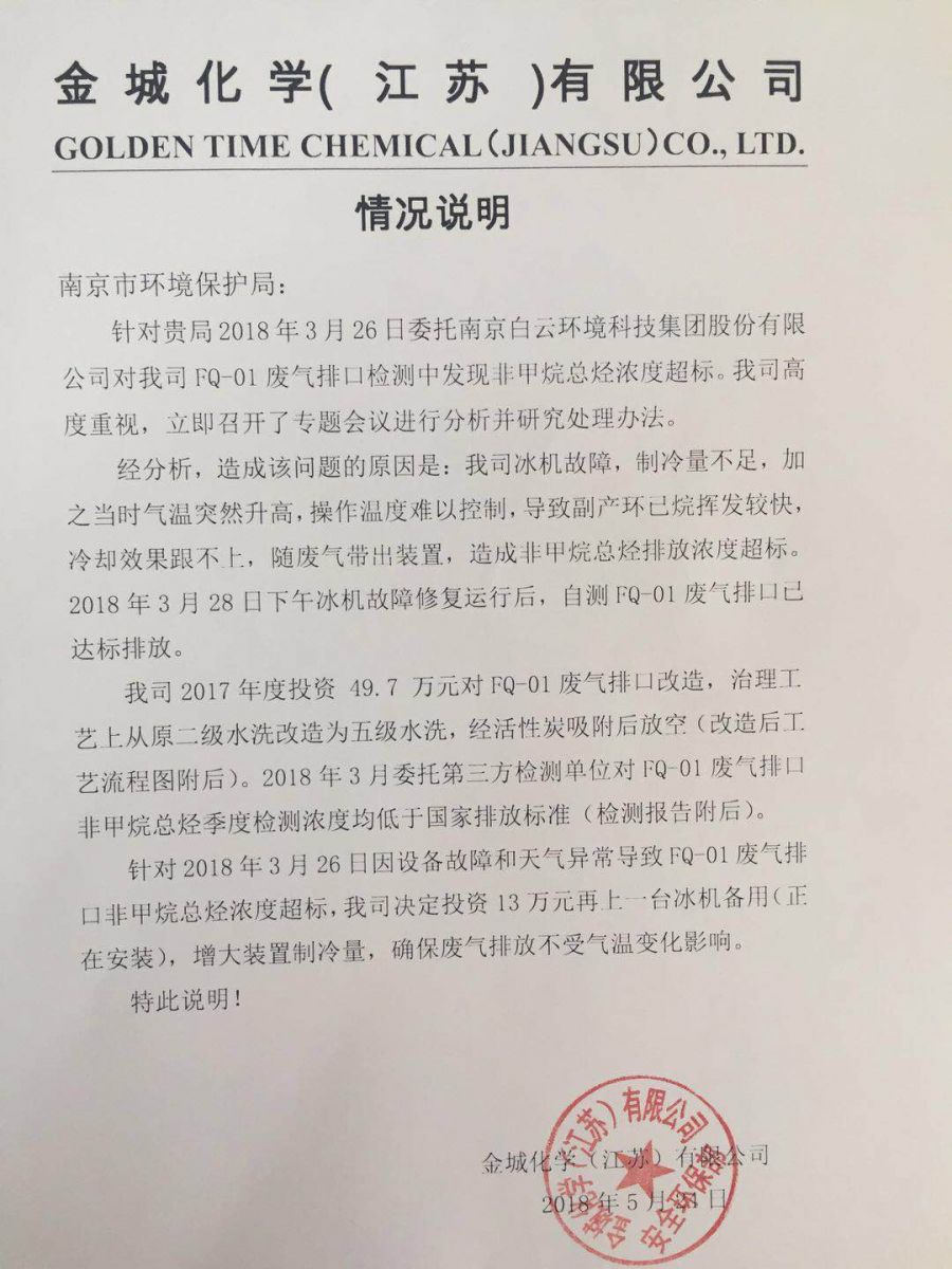 環(huán)己胺裝置排口超標(biāo)情況說明